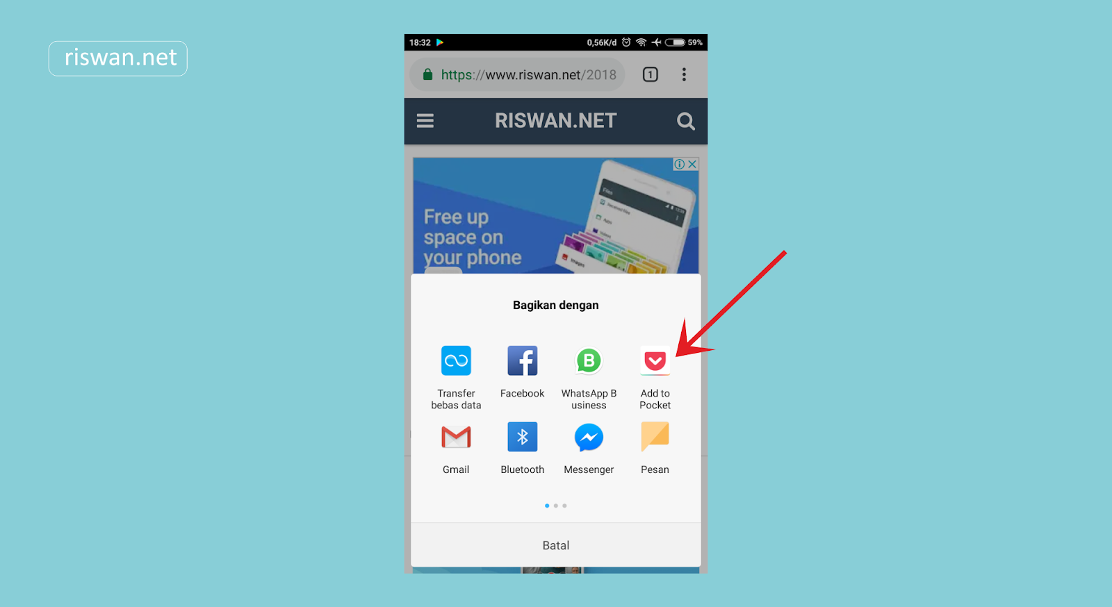 Langkah keempat, pilih Add to Pocket maka secara halaman artikel tersebut akan tersimpan di aplikasi pocket, yang dapat sobat baca ketika offline atau online.