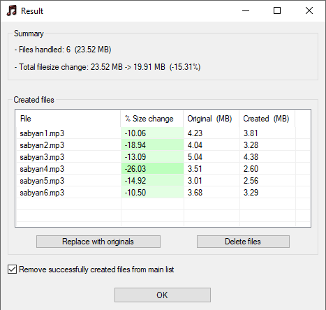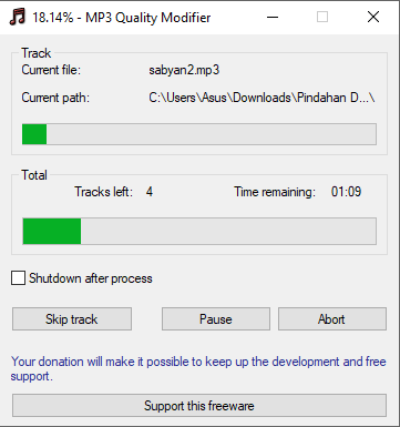 Sampai sini sobat sudah selesai, File MP3 yang semula berukuran rata-rata 4 MB dapat dikompres menjadi 3 MB, sebenarnya ini masih bisa kita akali supaya ukuran file bisa lebih kecil lagi. Tapi ingat, semakin kecil ukuran file Mp3, maka kualitasnya aka berkurang.