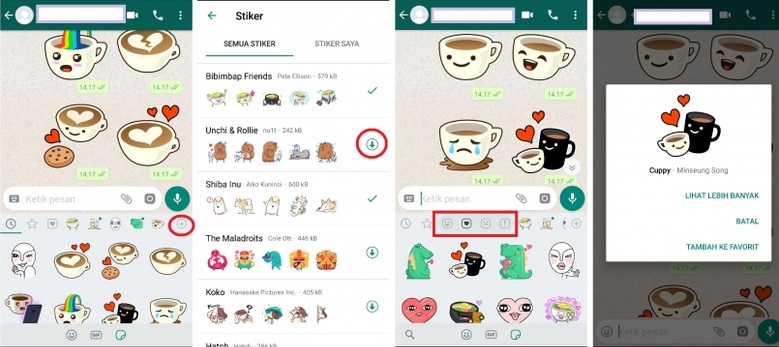 Semua koleksi sticker yang telah di download akan ditempatkan berdasarkan kategori, seperti kategori ekspresi senang, jatuh cinta, sedih, atau marah.